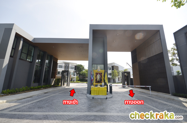 ซุ้มประตูโครงการมีขนาดใหญ่ ดีไซน์เรียบๆ สไตล์โมเดิร์น มีหลังคากันแดด-ฝนให้อย่างดี