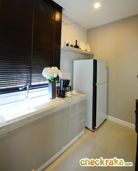 ครัวของที่นี่เป็นครัวแยกมาให้อย่างชัดเจน มีพื้นที่สำหรับวางตู้เย็น และเคาน์เตอร์สำหรับทำครัว