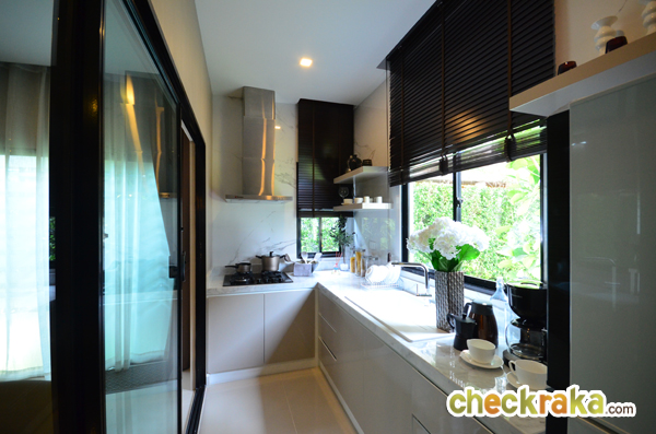 ภายในครัวสามารถตกแต่งเคาน์เตอร์ตัว L ได้ สำหรับบ้านหลังมุมจะมีหน้าต่างบานเลื่อนด้านข้างมาให้