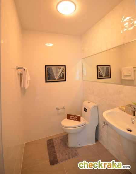 ห้องน้ำของที่นี่ให้สุขภัณฑ์มาครบทั้งโถสุขภัณฑ์ อ่างล้างมือ และกระจก นอกจากนี้ยังแยกส่วนเปียก/แห้งให้อย่างชัดเจน