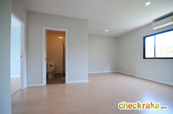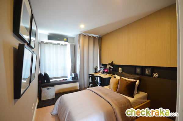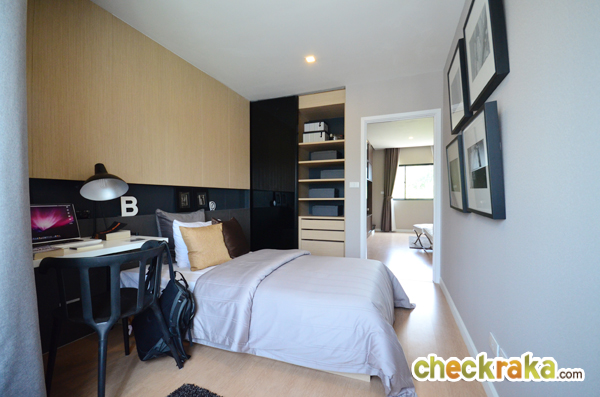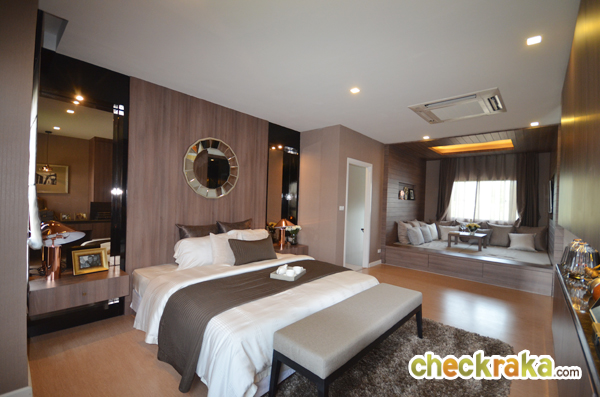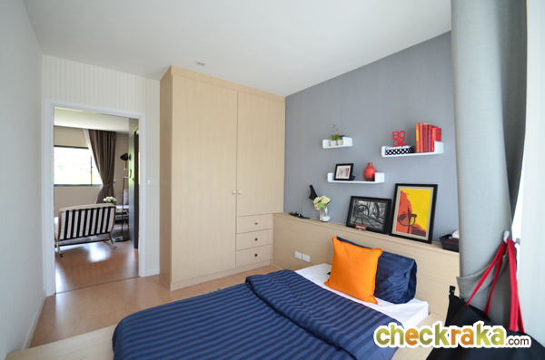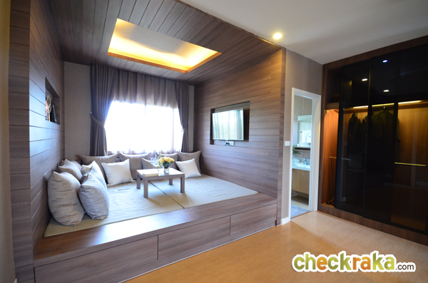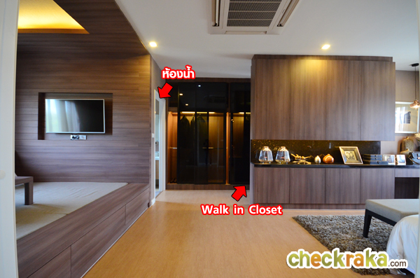 รูปนี้แสดงให้เห็นผนังกั้น (ตกแต่งเพิ่มเติม) ระหว่าง Walk in Closet กับเตียงนอน ทำให้ดูแยกส่วนกันชัดเจน