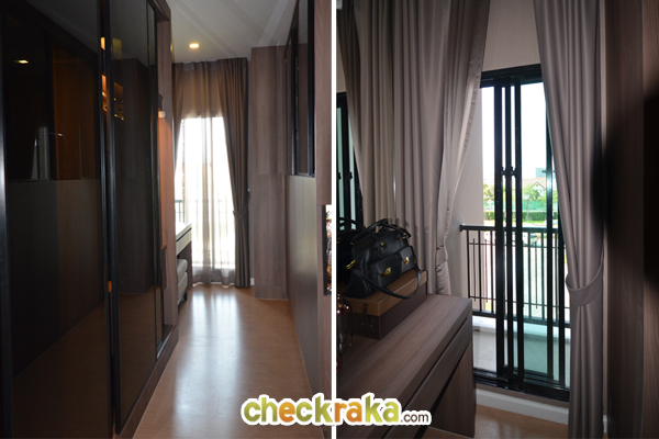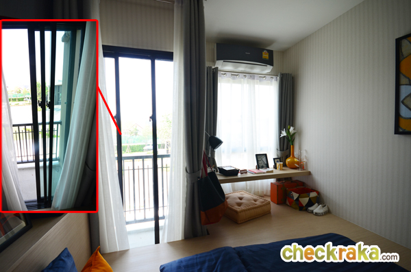 ภายในห้องมีประตูบานเลื่อนเปิดออกไประเบียงด้านนอก และมีหน้าต่างบานเลื่อนให้อีก 1 บาน
