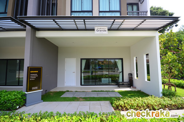 2) แบบบ้าน GRANDE - ทาวน์โฮม 3 ชั้น หน้ากว้าง 5.65 เมตร ขนาดที่ดินเริ่มต้น 20.5 ตารางวา มีพื้นที่ใช้สอย 185 ตารางเมตร ประกอบไปด้วย 3 ห้องนอน 3 ห้องน้ำ 1 พื้นที่รับแขก Family Area ห้องครัว และจอดรถได้ 2 คัน