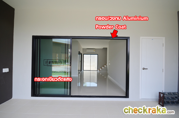 - แบบบ้านและวัสดุ - แบบบ้านทั้ง 2 แบบค่อนข้างลงตัวทีเดียว สามารถรองรับสมาชิกในครอบครัวได้หลายคนเพราะมีถึง 3 ชั้น ฟังก์ชั่นของบ้านก็สามารถตอบโจทย์สำหรับผู้ที่มีครอบครัวได้เป็นอย่างดี เพราะมี 3 ห้องนอนเท่ากัน อยู่ที่ความชอบว่าจะชอบ Master Bedroom ขนาดใหญ่อยู่ชั้นบน หรือลดขนาด Master Bedroom ลงและมาอยู่ที่ชั้น 2 วัสดุภายในบ้านก็คล้ายคลึงกันทั้งสองแบบ เช่น สุขภัณฑ์ใช้ของ American Standard/Kohler/Mogen พื้นชั้นล่างเป็นแกรนิตโต้ 60x60 ซ.ม. พื้นชั้นบนเป็นลามิเนตหนา 8 มม. บานประตูห้องภายในเป็นไม้ HDF ประตูครัวและห้องน้ำเป็น UPVC กรอบประตูหน้าต่างเป็นอลูมิเนียม Powder Coat สีดำ กระจกเขียวตัดแสงทั้งหลัง โดยรวมแล้ววัสดุและเกรดของวัสดุสมเหตุสมผลกับราคา