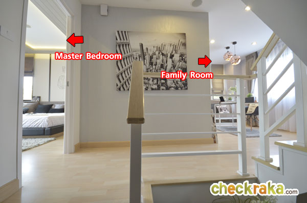 ขึ้นมาที่ชั้น 2 จะเป็นฟังก์ชั่นของห้อง Master Bedroom และ Family Room พื้นลามิเนตหนา 8 มม.
