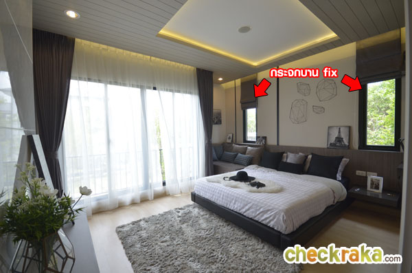 ตรงหัวเตียงจะมีกระจกบาน fix ซึ่งมีเฉพาะบ้านแปลงมุมนะคะ แปลงกลางจะไม่มีให้ สำหรับพื้นที่ข้างเตียง