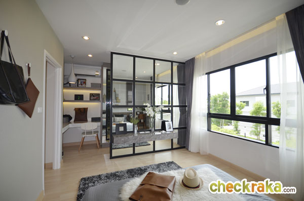 ยังมีพื้นที่เหลือพอวางโต๊ะข้างเตียงและวางโซฟาเข้ามุมได้อีกด้วย