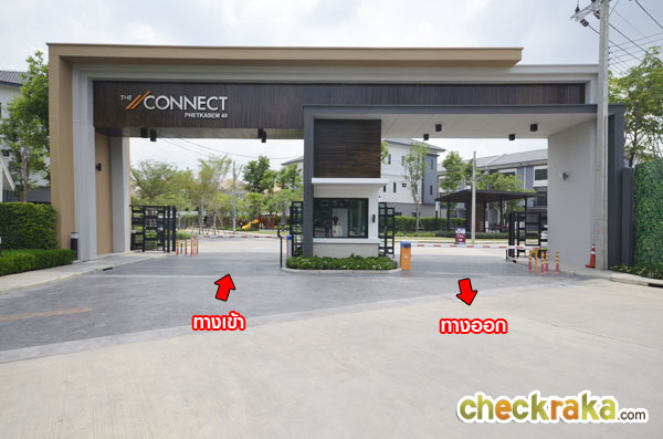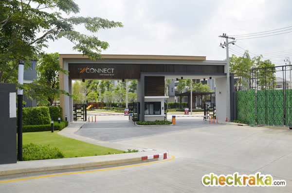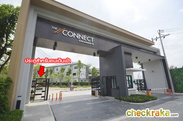 ซุ้มประตูโครงการมีขนาดใหญ่ พร้อมชื่อโครงการ The Connect Petchkasem 48 ดีไซน์เรียบสวย สไตล์โมเดิร์น