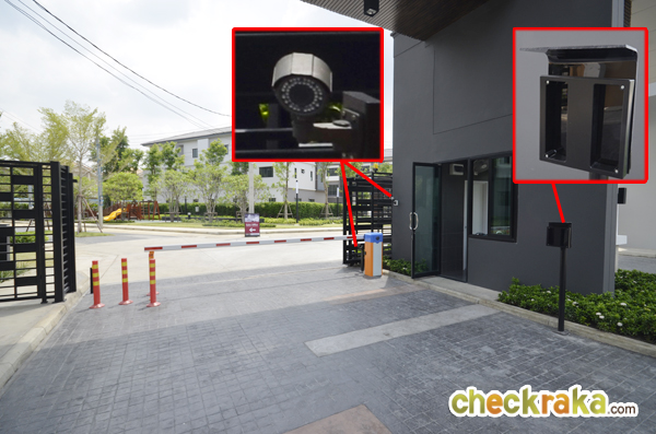 ที่ซุ้มประตูทางเข้าโครงการมีทั้ง รปภ. การ์ดสแกน ไม้กั้นกระดก ประตูบานเลื่อนอัตโนมัติ และ CCTV