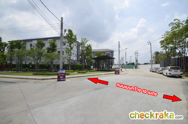 โครงการนี้มีถนนเมนกว้าง 10 เมตร ท้ายโครงการลึกเข้าไปถนนกว้าง 9 เมตร มองตรงไปตรงกำแพงสีเขียว