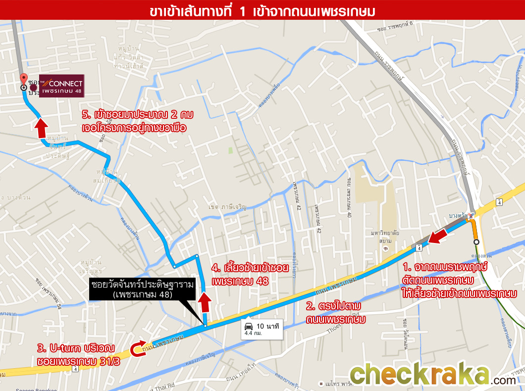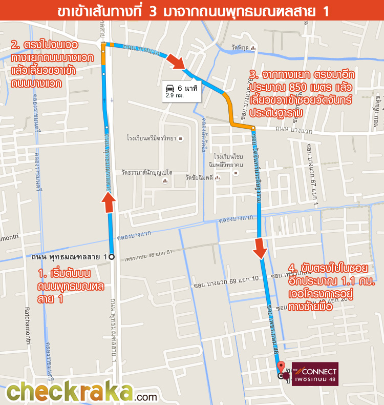(ระหว่างทางก็สังเกตป้ายซอยของเลนขวาไปด้วยก็ได้ค่ะ ซอยทางเข้าโครงการอยู่ที่ซอยเพชรเกษม 48)