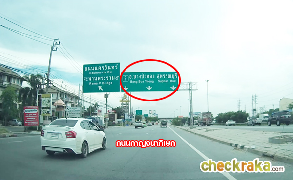 เริ่มจากถนนกาญจนาภิเษก มุ่งหน้าไปทางบางใหญ่ สะพานข้างหน้าคือจุดเชื่อมต่อถนนนครอินทร์กับถนนกาญจนาภิเษกค่ะ
