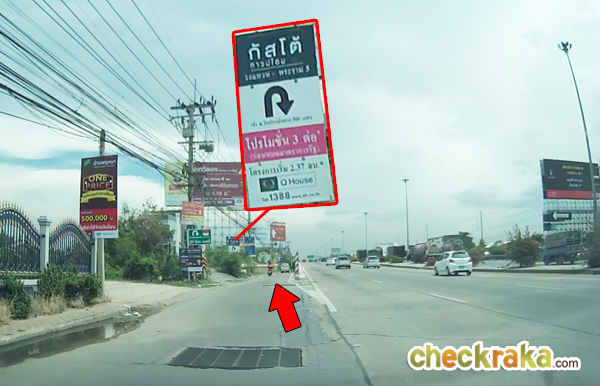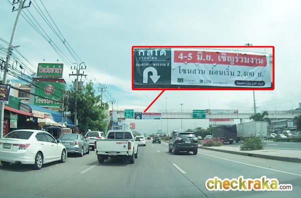Plus Mall ประมาณ 1.5 กม. จะเห็นสะพานลอยซึ่งตรงนี้มีป้ายบอกทางไปโครงการด้วยค่ะ ให้เตรียมชิดซ้ายเพื่อกลับรถได้เลย ผ่านสะพานลอยมาให้ชิดซ้ายเพื่อกลับรถใต้สะพาน ซึ่งตามทางจะมีป้ายชื่อโครงการบอกทางเรื่อยๆ