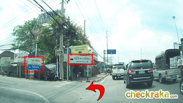 เมื่อกลับรถมาอีกฝั่งแล้ว ให้อยู่เลนซ้ายไว้ก่อนนะคะ เพราะซอยที่เข้าโครงการอยู่ไม่ไกลแล้ว