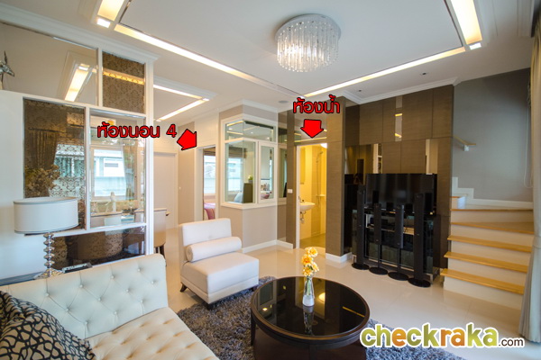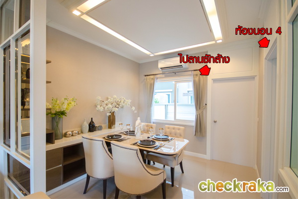 ชั้นล่างของบ้านจะมีห้องน้ำอยู่ใต้บันได ห้องนอน 4 สามารถประยุกต์เป็นห้องอเนกประสงค์ได้