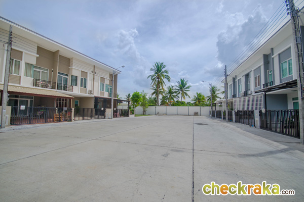 การเดินทางเข้าออกโครงการ - ที่ตั้งของโครงการนั้นจะอยู่ในซอยซึ่งไม่ได้ติดหน้าถนนกาญจนาภิเษก แต่มีความสะดวกเพราะสามารถเข้าออกได้หลายเส้นทาง โดยเส้นทางหลักจะเป็นทางเข้าจากถนนกาญจนาภิเษก ผ่านถนนวัดปรางค์หลวงเข้ามาเพียง 7 ร้อยเมตรก็ถึงโครงการแล้ว ส่วนทางเข้าจากถนนบางกรวย-ไทรน้อยก็เข้าได้เช่นกัน แต่มีหลายแยก เลี้ยวหลายครั้งอาจสับสนได้ง่าย แต่ถ้าหากใครมาจากถนนราชพฤกษ์แล้วเข้าโครงการผ่านถนนบางกรวย-ไทรน้อยจะสะดวกมากกว่า เพราะช่วยย่นระยะทางได้ดีทีเดียวค่ะ ตัวโครงการยังไม่มีรถสาธารณะผ่านการเดินทางด้วยรถยนต์จึงเป็นตัวเลือกที่สะดวกที่สุด สำหรับการเดินทางด้วยรถสาธารณะนั้น ตรงหน้าปากซอยของถนนกาญจนาภิเษกจะมีวินมอเตอร์ไซค์ สามารถนั่งเข้ามาที่โครงการได้ในราคาไม่แพง ส่วนการเดินทางด้วยรถไฟฟ้า มีรถไฟฟ้าสายสีม่วง บางซื่อ - บางใหญ่ (จะเปิดให้บริการปลายปี 2559) โดยสถานีที่ใกล้กับโครงการมากที่สุดจะเป็นสถานีตลาดบางใหญ่ ซึ่งห่างจากโครงการประมาณ 5 กม. จะทำให้การเดินทางสะดวกมากขึ้นไปอีกค่ะ ทำเลรอบโครงการ - บรรยากาศรอบๆ โครงการถือว่ามีความเป็นธรรมชาติ ไม่พลุกพล่านค่ะ มีทางเข้าออกได้หลายทางสามารถไปยังโซนใกล้เคียงต่างๆ ได้อย่างสะดวก มีร้านอาหาร และร้านสะดวกซื้ออยู่ภายในซอยโครงการ ส่วนแหล่ง Shopping ที่ใกล้ๆ โครงการเลยก็มี บางใหญ่ Plus Mall, The Walk ราชพฤกษ์ และ Home Pro ราชพฤกษ์ ส่วนตลาดที่อยู่ใกล้ๆ ก็เช่น ตลาดพระราม 5 และตลาดเจ้าพระยา นอกจากนี้ยังมีโรงพยาบาล และสถานศึกษา เช่น โรงพยาบาลบางใหญ่, โรงเรียนวัดพิกุลเงิน, โรงเรียนเตรียมอุดม ศึกษาพัฒนาการ นนทบุรี , โรงเรียนเด่นหล้า พระราม 5 และโรงเรียนเทพศิรินทร์ นนทบุรี ตั้งอยู่ใกล้ๆโครงการอีกด้วยค่ะ โดยรวมแล้วทำเลรอบโครงการถือว่าดีค่ะ ตัวโครงการโดยรวมและส่วนกลาง - ทางเข้าโครงการจะมีลักษณะเป็นแนวลึกเข้าไปด้านในอีกประมาณ 30 เมตร จะเจอกับด่านทางเข้าโครงการ ที่มีป้อม รปภ. และไม้กั้นกระดก สำหรับลูกบ้านจะมีระบบ Scan Access ผ่านเข้าไปได้เลย ส่วนผู้มาเยี่ยมเยือนจะต้องแลกบัตรก่อน โดยจะมีเจ้าหน้าที่รักษาความปลอดภัย และกล้อง CCTV อยู่ด้วย เมื่อเข้ามาแล้วจะเจอกับ Sales Gallery และบ้านตัวอย่างก่อน ถัดเข้าไปด้านในจะมีวงเวียนที่ทำเป็นต้นไม้ไว้ ซึ่งตรงแยกนี้จะมี Club House อยู่ ภายใน Club House ประกอบไปด้วย ฟิตเนส และสระว่ายน้ำ โดยเป็นแบบเปิดโล่งทั้งหมด สระว่ายน้ำมีขนาด 5x15 เมตร ลึก 1.2 เมตร มีฝักบัวชำระล้างตัวก่อนลงสระ 1 จุด และมีห้องน้ำแยกชาย-หญิง อยู่ด้านหลังสระว่ายน้ำ โครงการมีบ้านทั้งหมด 274 หลัง ถนนหลักของโครงก