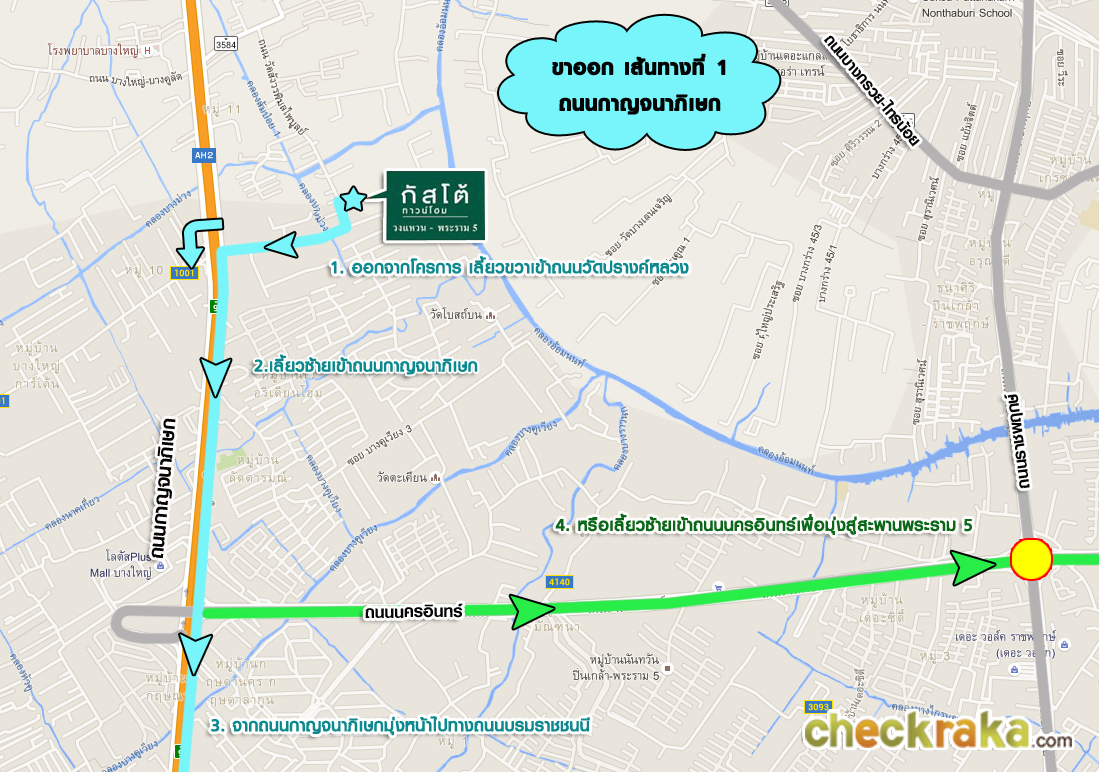 ขาเข้าโครงการ เส้นทางที่ 2 เข้าทางถนนบางกรวย - ไทรน้อย