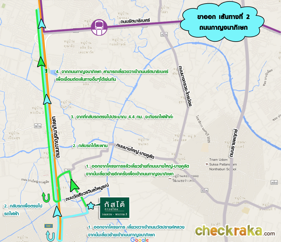 ขาออกโครงการ เส้นทางที่ 2 ออกโครงการไปรถไฟฟ้าสายสีม่วง