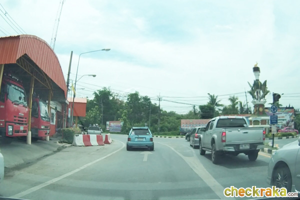 ตรงมาจะเจอกับทางแยก ที่มีโค้งวงเวียนต้นไม้อยู่