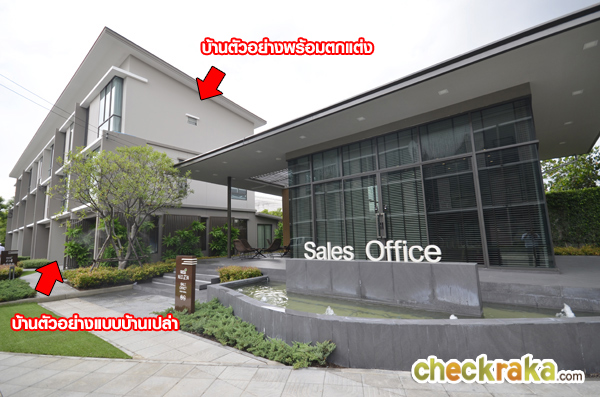 ผ่านซุ้มประตูเข้ามาจะเห็น Sale Office และบ้านตัวอย่างอยู่ฝั่งขวามือ
