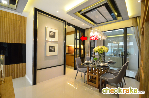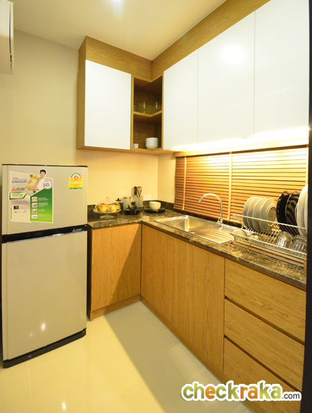 ห้องครัวของที่นี่สามารถติดตั้งประตูเพิ่มก็จะทำให้ได้ครัวที่มิดชิดขึ้น มีขนาดพอเหมาะสามารถวางเคาน์เตอร์ตัว L