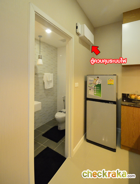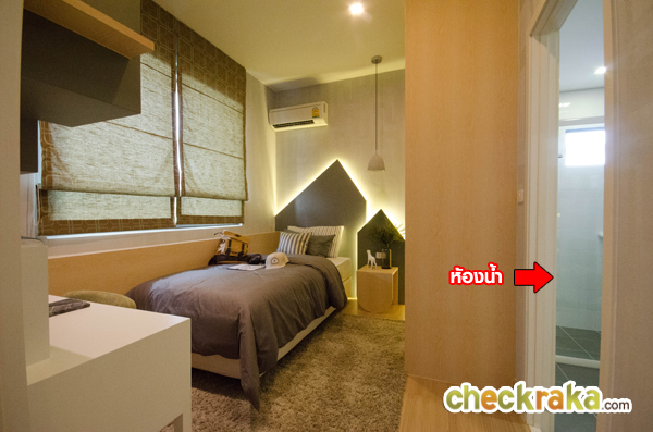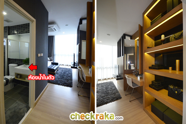 ภาพอีกมุมหนึ่ง จะเห็นฟังก์ชั่น ของห้องน้ำและฝ้าดรอปลงมาเล็กน้อย