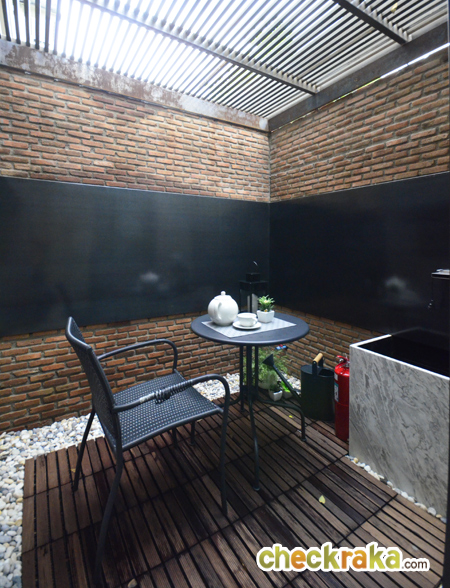 อีกส่วนหนึ่งตกแต่งเป็นพื้นที่พักผ่อนนั่งเล่น ติดหลังคาแบบโปร่งรับแสงจากธรรมชาติ