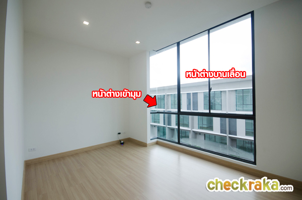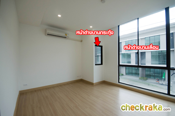 เปรียบเทียบกับบ้านเปล่า จะเห็นขนาดห้องและหน้าต่างได้ชัดเจนขึ้น ตัวหน้าต่างบานเลื่อนและบาน fix