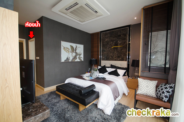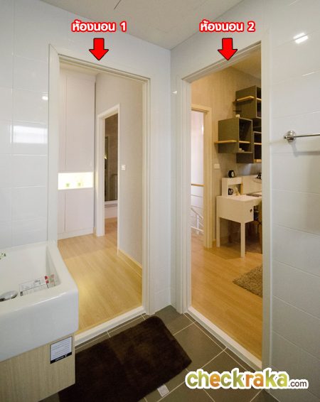 ลองมองย้อนออกไปดูว่าห้องน้ำอยู่ภายในห้องนอนทั้งสอง มีประตูเปิดเข้าได้จากในห้องนอน