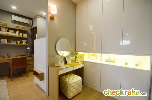 วางโต๊ะอ่านหนังสือ และกั้นผนังเบาสำหรับวางทีวี ก็ได้ Mini Walk in Closet คล้ายๆ กับ Master Bedroom เลยค่ะ