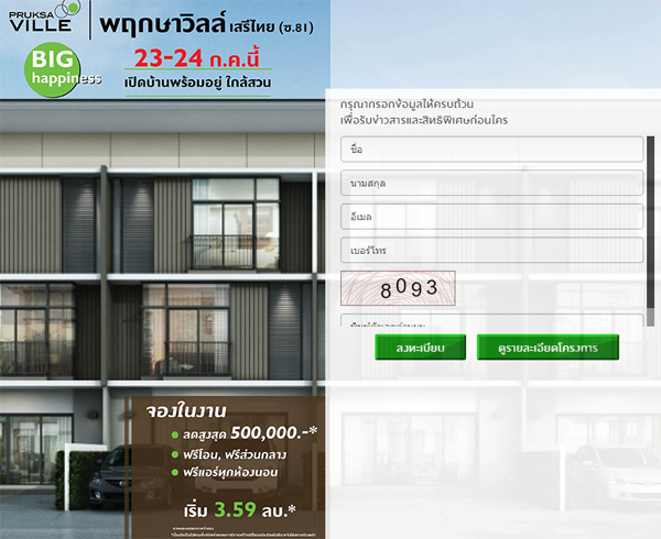 โครงการได้เปิด Pre-sale ไปเมื่อวันที่ 27 - 28 กุมภาพันธ์ที่ผ่านมา โดยวันที่ 23 - 24 กรกฎาคม นี้ จะมีงาน "Big Happiness" โครงการ "พฤกษาวิลล์ รามคำแหง-เสรีไทย" เปิดจองบ้านพร้อมอยู่ใกล้สวน พร้อมรับสิทธิพิเศษในงานมากมาย อาทิ รับส่วนลดสูงสุด 500,000 บ.* / ฟรีโอน+ค่าส่วนกลาง* / ฟรีแอร์ทุกห้องนอน* ในราคาเริ่มต้น 3.59 ล้านบาท สามารถลงทะเบียนรับข่าวสาร และสิทธิพิเศษเพิ่มเติมได้ที่ลิงก์ด้านล่างนี้ค่ะ