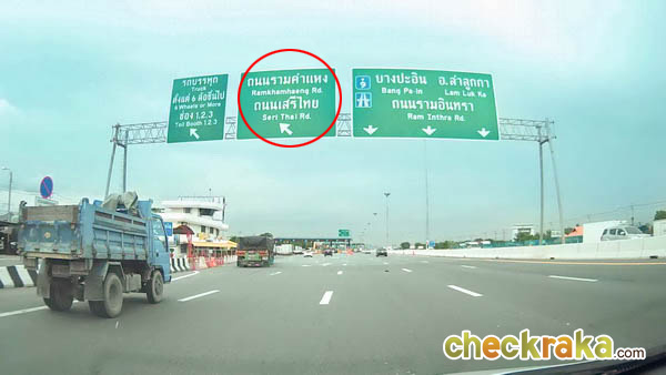 เข้าเลนขวา ระหว่างทางมีป้ายบอกทางไปถนนเสรีไทยเรื่อยๆ