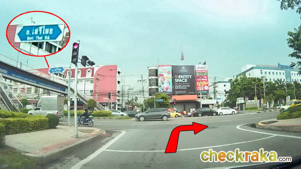 เจอทางแยกเข้าถนนเสรีไทย รอไฟแดงแล้วเตรียมเลี้ยวขวา