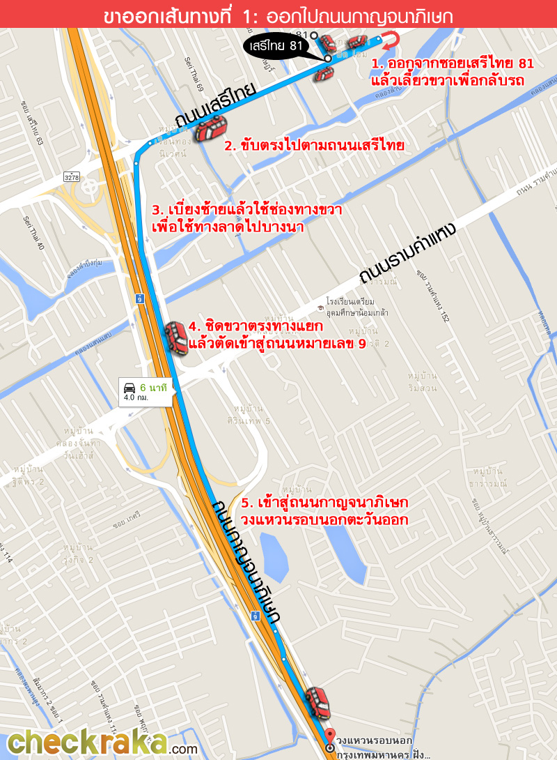 ขับตรงไปตามป้ายถนนเสรีไทย ชิดเลนขวา