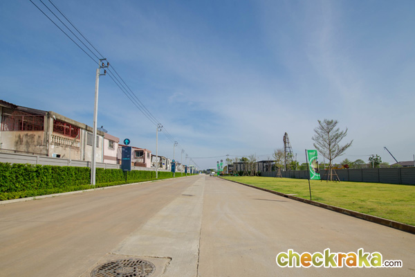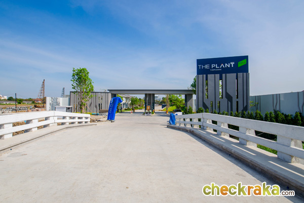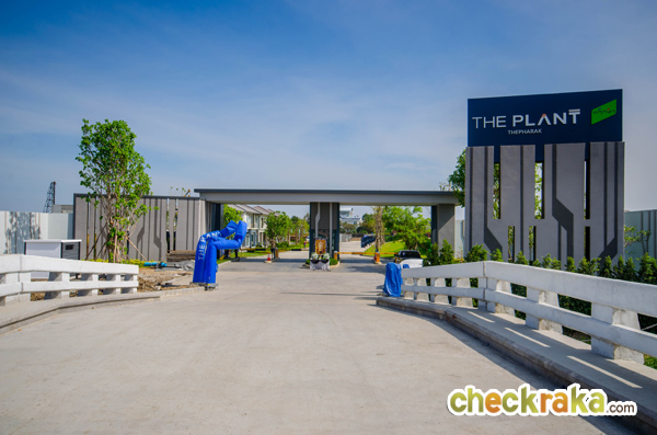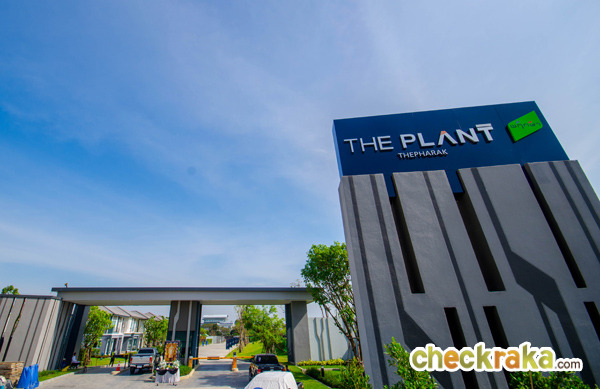 ด้านหน้าก่อนถึงซุ้มประตูทางเข้าโครงการจะมีป้ายชื่อโครงการ The Plant Thepharak ขนาดใหญ่
