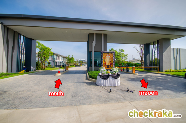 ซุ้มประตูโครงการมีขนาดใหญ่สไตล์โมเดิร์น มีหลังคาเวลาสแกนบัตรสามารถบังแดดและกันฝนได้