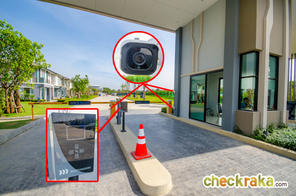 ที่ซุ้มประตูมี รปภ. ไม้กั้นกระดก CCTV บริเวณที่สแกนคีย์การ์ดเข้า-ออกโครงการ