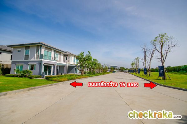 ถนนเมนกว้าง 16 เมตร ตรงเข้าไปจนถึงวงเวียน หลังจากวงเวียนจะกว้าง 12 เมตร