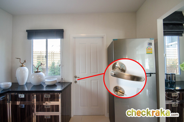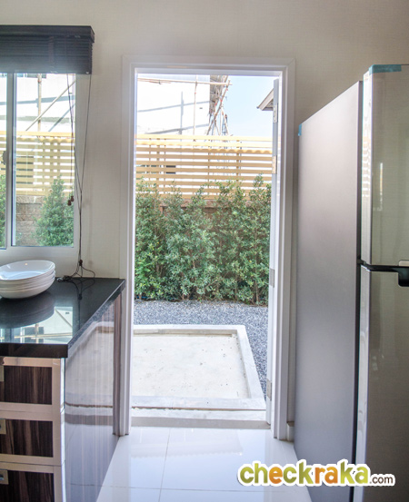 ประตูด้านหลังเป็น UPVC มือจับสีสแตนเลสด้าน ของ Colt ซึ่งสามารถเปิดออกไปส่วนซักล้างหลังบ้านได้