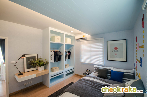 อีกฝั่งของผนังสามารถจัดวางตู้เสื้อผ้าและโต๊ะอ่านหนังสือได้พอดี