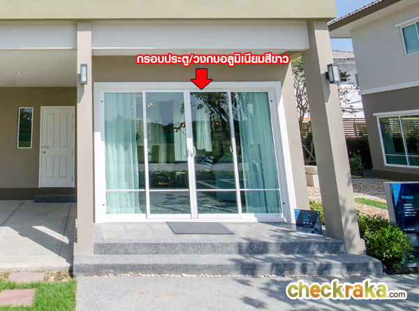 ส่วนต่อไปเรามาดูที่ประตูทางเข้าหลักของบ้านกันบ้างค่ะ ตัวพื้นบ้านจะสูงขึ้นมาจากถนนและพื้นด้านนอกเล็กน้อย