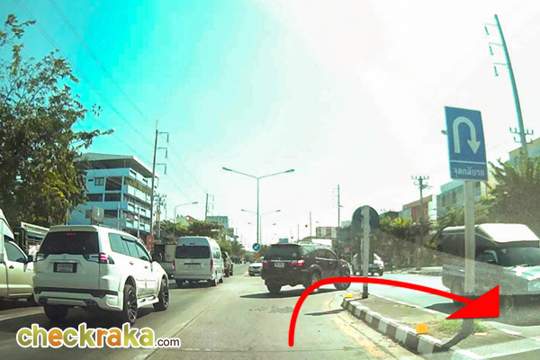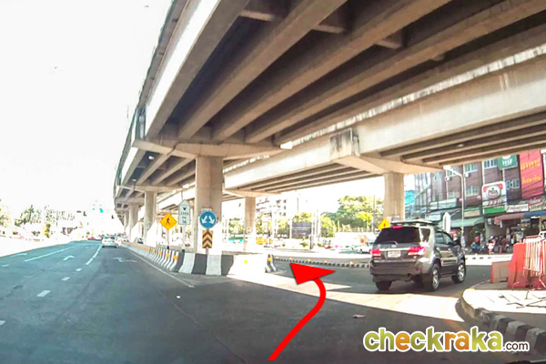 จากนั้นให้เข้าช่องกลาง เพื่อเตรียมเลี้ยวขวาเข้าถนนเทพารักษ์