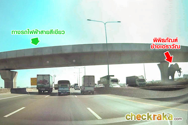 จะผ่านพิพิธภัณฑ์ช้างเอราวัณ โดยบริเวณนี้จะมีเส้นทางรถไฟฟ้าสายสีเขียวส่วนต่อขยายพาดอยู่ด้านบนพอดี
