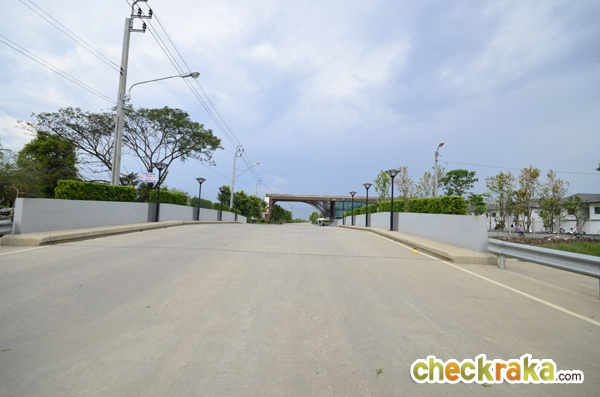 เลี้ยวซ้ายมาแล้วจะเจอกับสะพานข้ามคลองสาธารณะ และซุ้มประตูขนาดใหญ่ที่เห็นอยู่ด้านหน้า