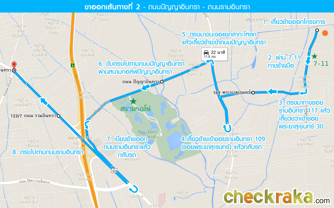 เส้นทางที่ 2 - ขาออกไปทางถนนปัญญาอินทรา แล้วเข้าเมือง