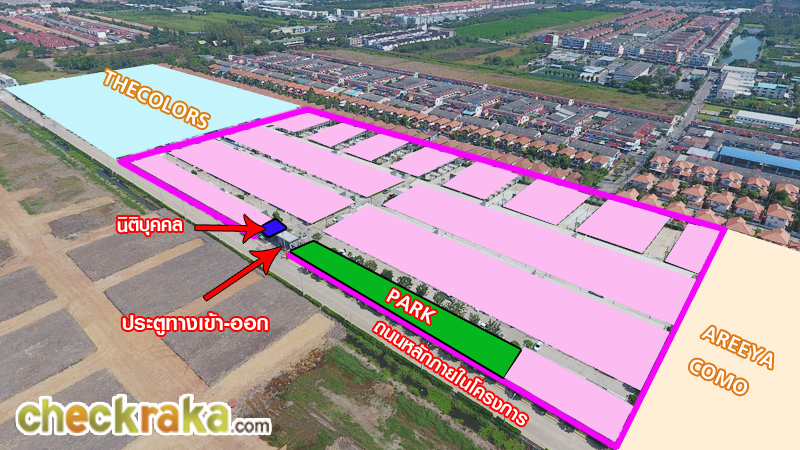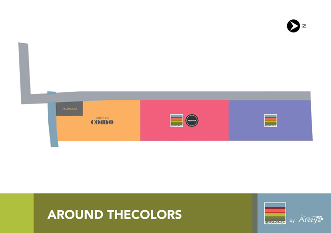 ผ่านคลับเฮ้าส์ตรงเข้ามาจะเป็นโครงการ AREEYA COMO จากนั้นคือโครงการ TheColors Premium วงแหวน-รามอินทรา ทาวน์โฮม 2 ชั้น 2 ที่จอดรถที่เราจะพาทุกท่านมาเยี่ยมชมในวันนี้ และโครงการ