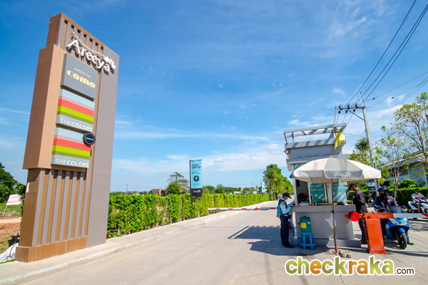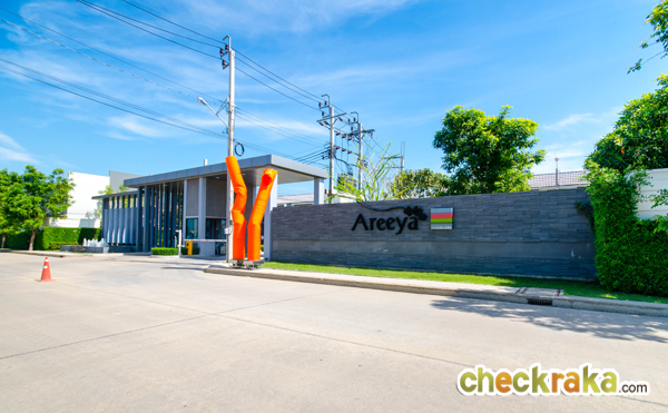 ป้ายด้านหน้าทางเข้าแสดงให้เห็นถึงโครงการด้านในทั้ง 3 โครงการ ได้แก่ AREEYA COMO บ้านเดี่ยว