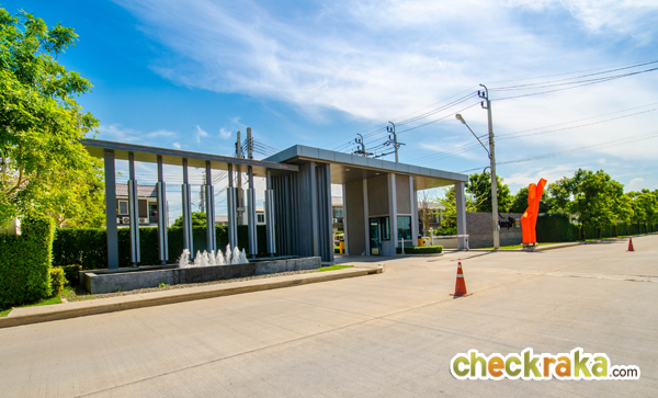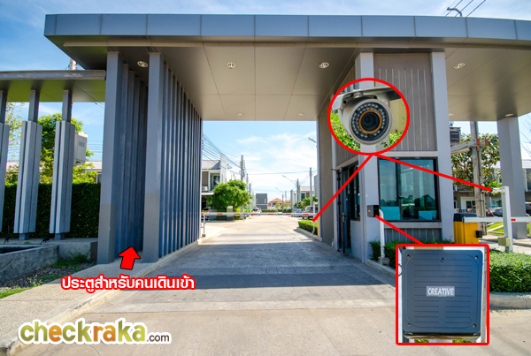 ซุ้มประตูมี รปภ. ไม้กั้นกระดก CCTV บริเวณที่สแกนคีย์การ์ดเข้า-ออกโครงการ และรั้วแยกกับโครงการอื่นๆ