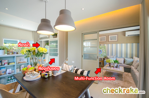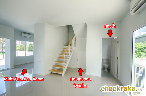 ภาพจากมุมนี้จะเห็นฟังก์ชั่นส่วนอื่นๆ ของชั้น 1 ได้ชัดเจนขึ้น ส่วนแรกที่เห็นตามรูปเลยคือ ห้องอเนกประสงค์