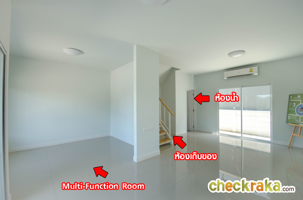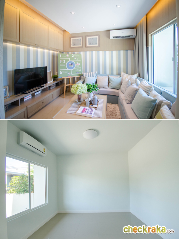 Multi-Function Room หรือห้องอเนกประสงค์ เปรียบเทียบให้ดูกันระหว่างบ้านตัวอย่างกับบ้านเปล่า ห้องนี้บ้านตัวอย่าง